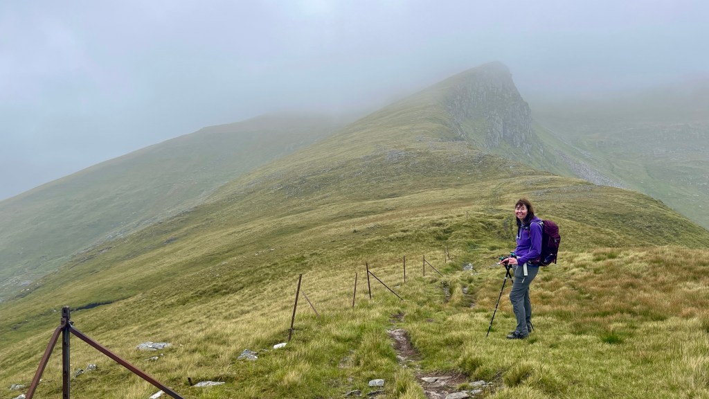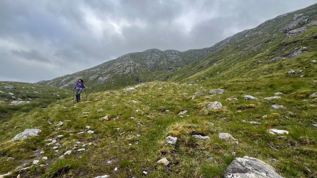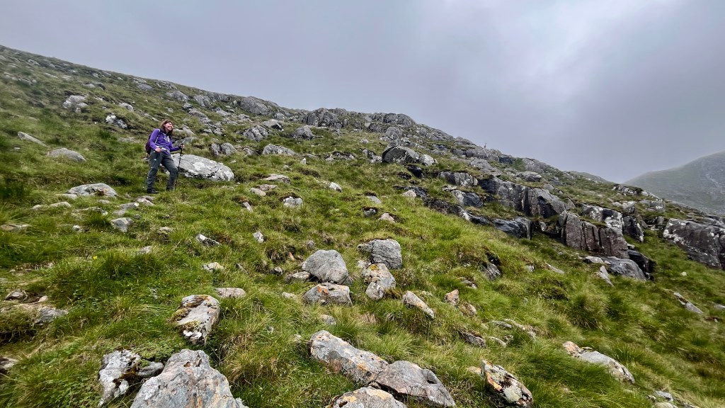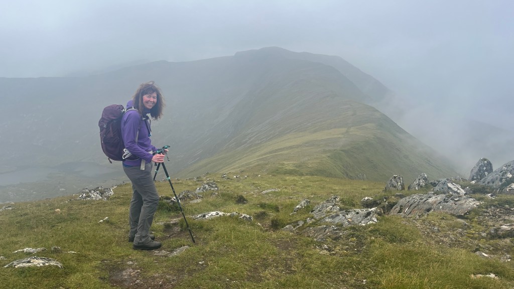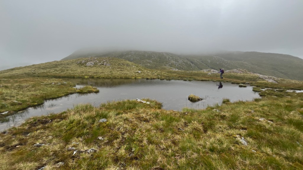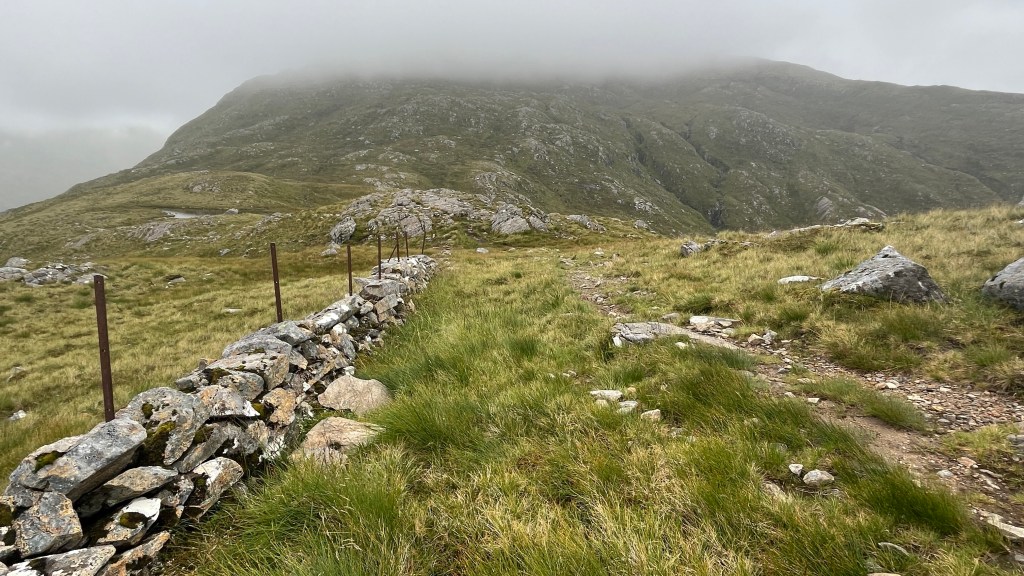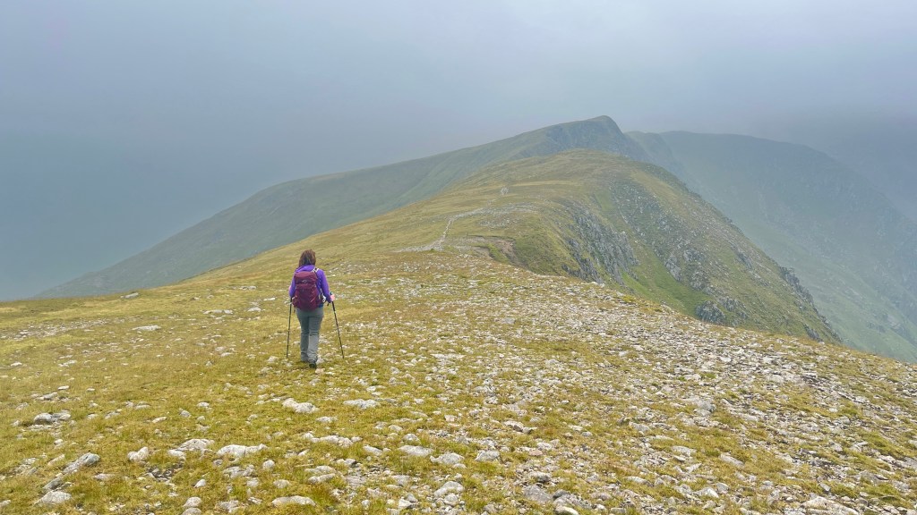 With four munros in the bag, I was excited to continue on to see what was ahead. The legs were feeling pretty good, all was well with the feet, and our only gripe was that the cloud was stubbornly hanging around, impacting on the views. The next munro looked large in the distance.