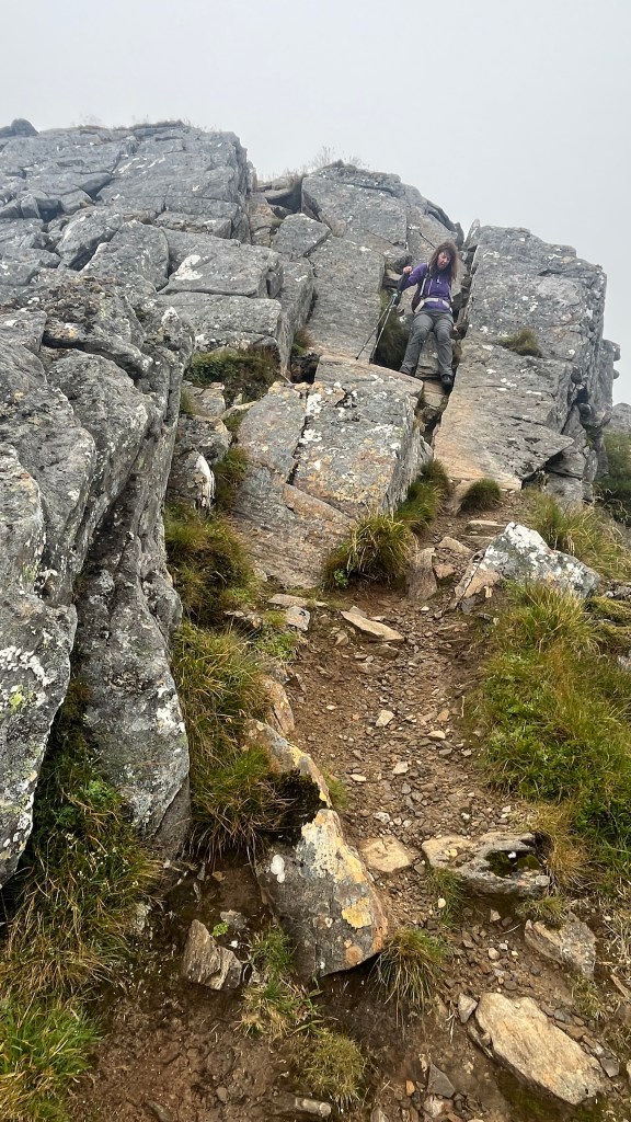 In some ways the cloud cover helped as it was sometimes a challenge to tell where the summit was and how much more ascent was required. This was another decent pull up, followed by a very short out and back from the main ridge.