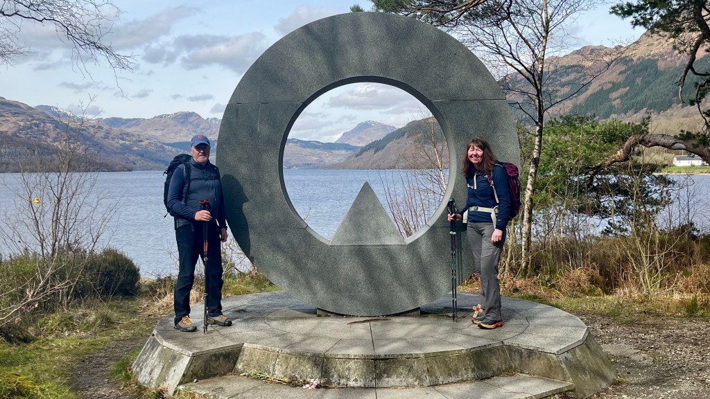 A wee detour off the path took us to the memorial on the shore and a rare photo of us both.