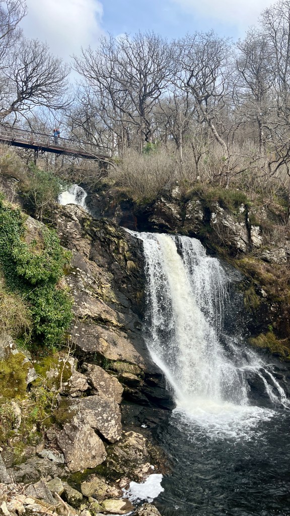 Always a surprise, around a bend and the hotel at Inversnaid suddenly appears in front of you alongside the waterfall which was in great flow today.