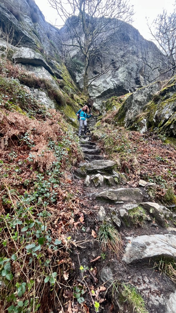 After a wee bit of gentle path there are a few hundred metres of ascent and descent.