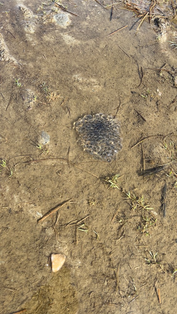 Unfortunately the same couldn’t be said of the underfoot conditions and we plodded through puddle after puddle. Maybe par for the course at this time of year as many, noticeably those with any little flow passing through, were filled with frogspawn, much to my delight.