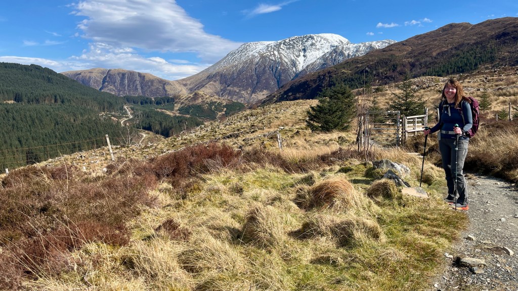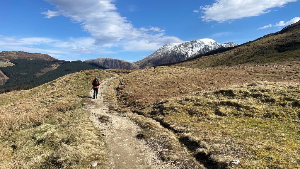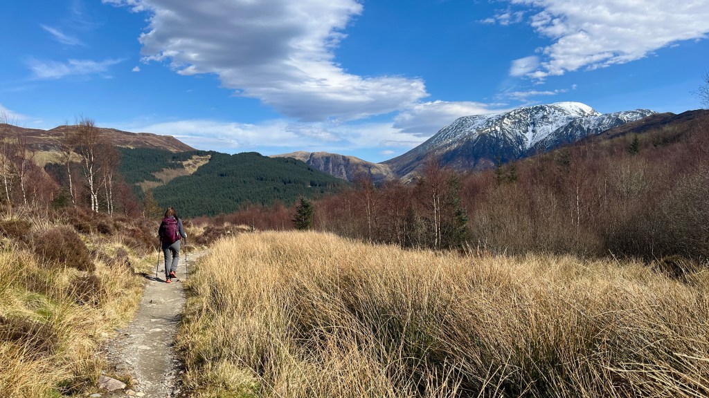 The reward on a day like this with clear skies and sunshine is climbing a slight incline to see Ben Nevis. On many days, this stunning beast of a mountain has its head in the clouds. Not so today.