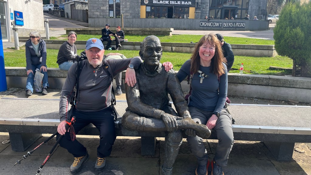 Following the road back round from Glen Nevis, we made our way into Fort William and along to the bench and statue that heralds the finish. We waited our turn for a photo.